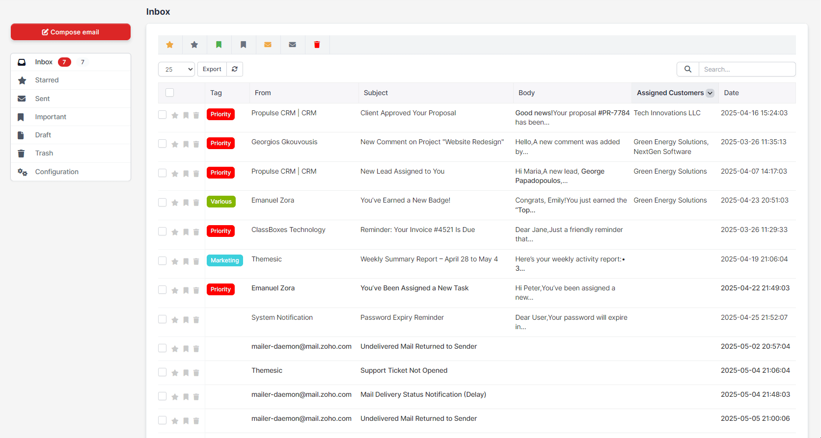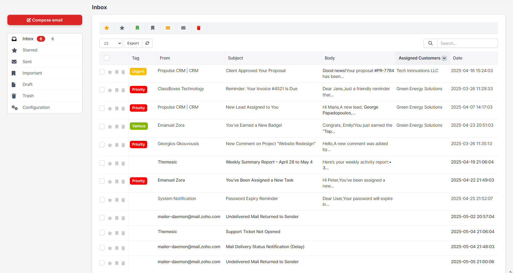Transform customer inquiries into fully-featured support tickets inside Perfex CRM. Automatically tag, prioritize, and route emails to the right department, ensuring no request slips through the cracks and your support team stays fully aligned.